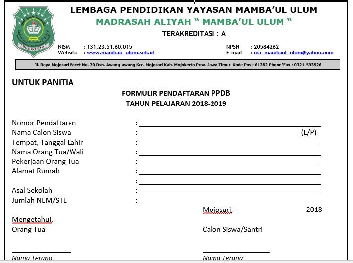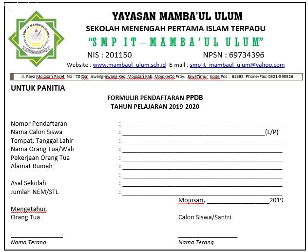 Pendaftaran Siswa baru bisa Online dan OfflineOnline : . . .